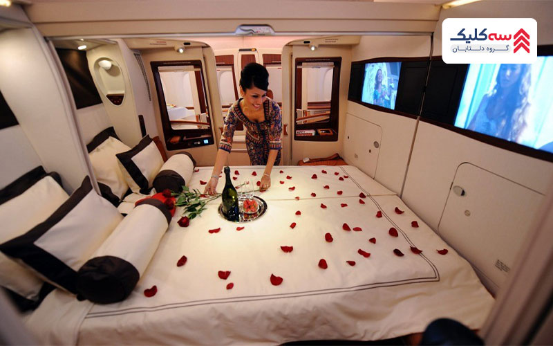 در این پروازها حتی شما میتوانید روی آسمان دوش بگیرید و از لوازم بهداشتی مخصوص به خود استفاده کنید.