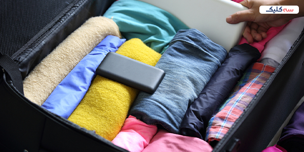 این کار، استفاده از فضای چمدان را به حداکثر می رساند و لباس ها دچار چین و چروک کمتری می شوند. همچنین می توانید از کش استفاده کنید تا لباس های رول شده را در کیف خود محکم نگه دارید.